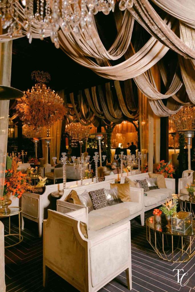 The planning focused heavily on spatial storytelling—transforming each venue within Raffles into a completely new world. The décor was not just aesthetic; it was immersive. From textures and lighting to florals and furniture, everything was curated with precision to create layered visual depth.