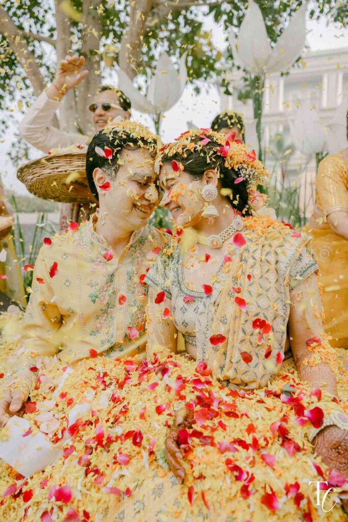 The Haldi ceremony brought a refreshing contrast to the glamour of the Sangeet. Hosted by the poolside at Compass Garden, this event was vibrant, cheerful, and full of life.
